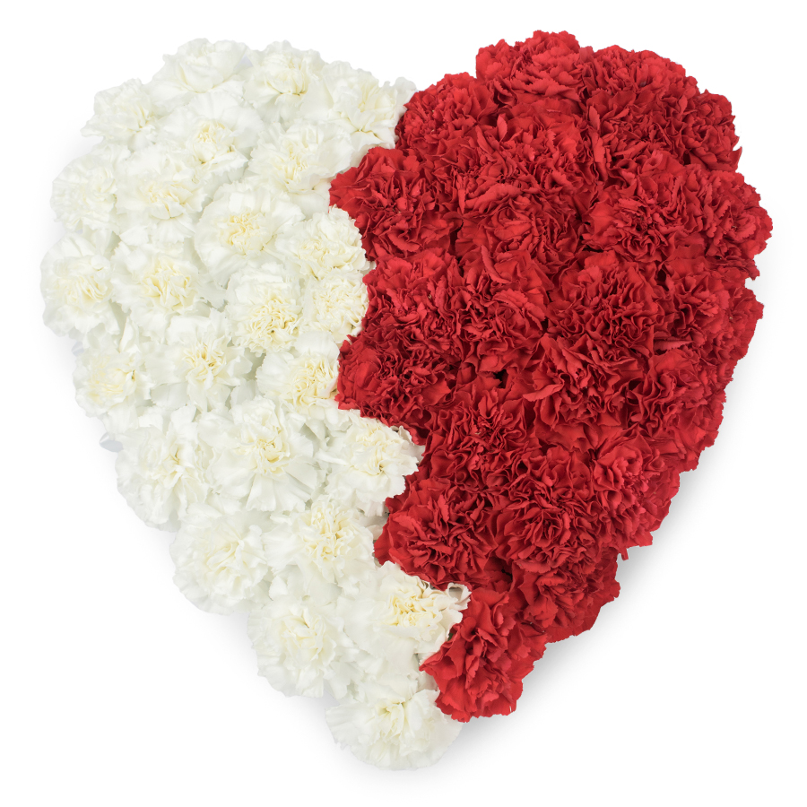 Discover the exquisite beauty of our mixed carnations heart floral bouquet. This elegant arrangement features a vibrant combination of white and red carnations, each chosen for their superior freshness and quality.